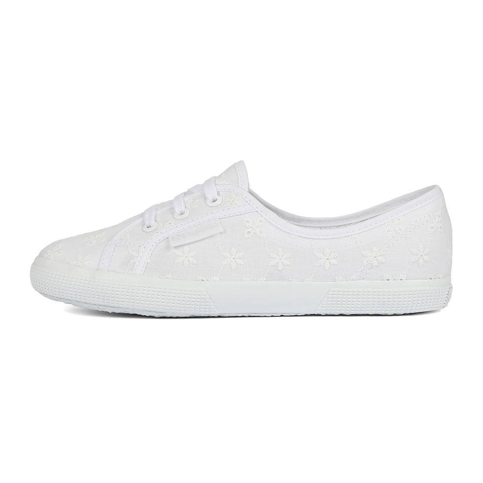 This ballerina silhouette is delicate and luminous thanks to its precious fabric. The sneaker reaffirms the Superga DNA, with a white vulcanized natural rubber sole and a sangallo cotton upper with internal organza lining. This makes the style ideal for the summer season and for ceremonies with a modern and romantic taste.