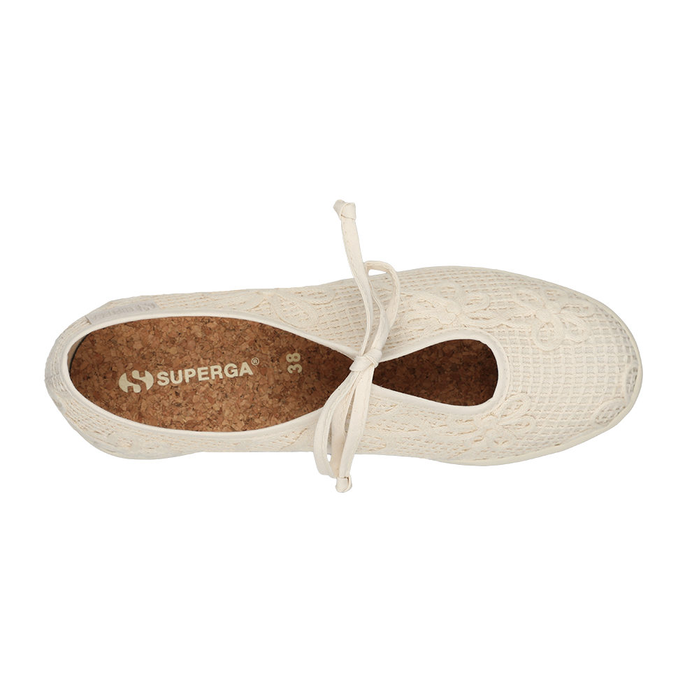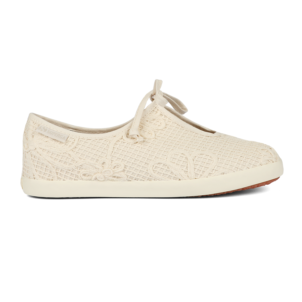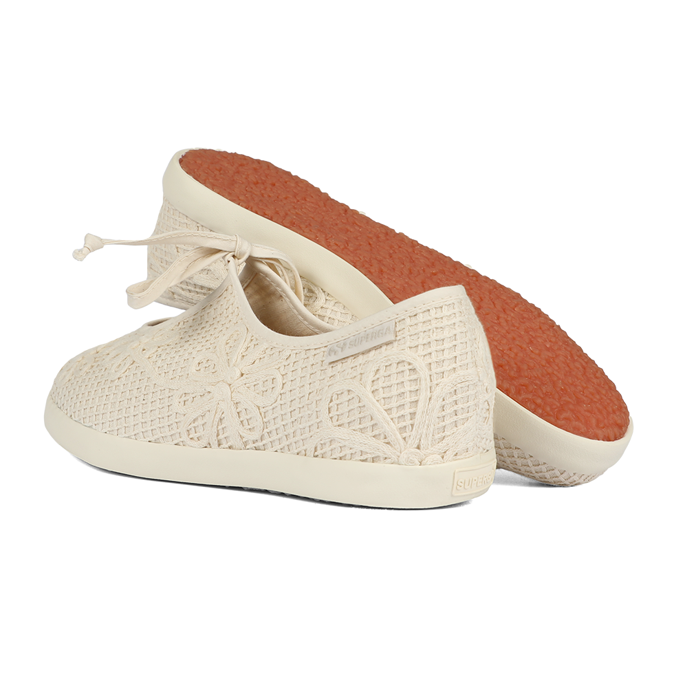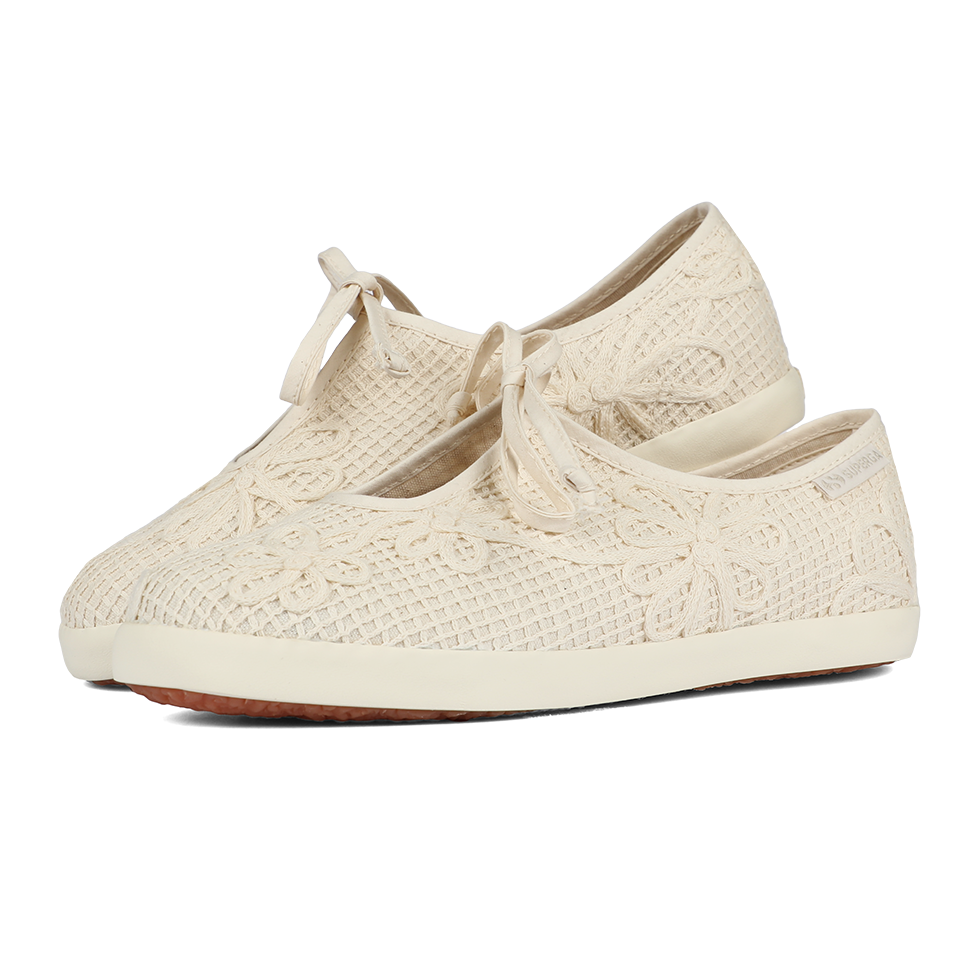 Easy-chic and effortlessly versatile, Superga Ballerina bring a refined touch from desk to aperitivo. Designed with a floral crochet cotton upper, cotton bindings, and laces, the sleek, delicate silhouette is grounded by a flat vulcanized rubber sole for everyday ease.