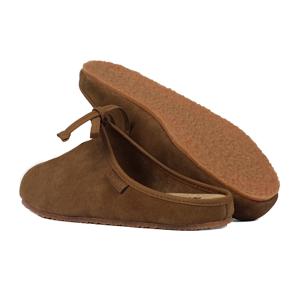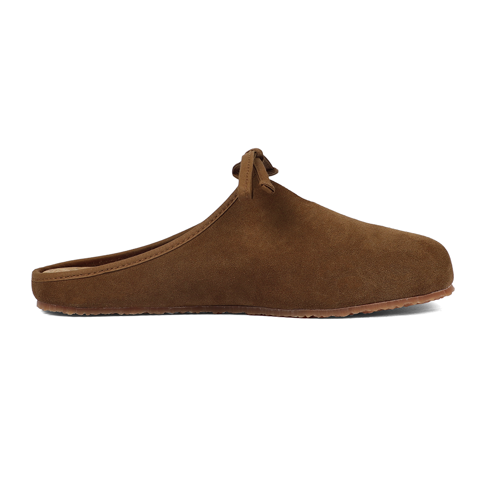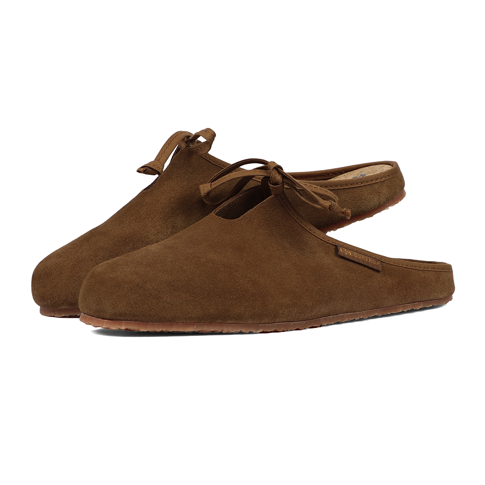 A symbol of effortless elegance, these ultraflat slippers are designed to complement easy-chic looks all year round. Crafted with a soft suede upper and lace closure, they feature an unlined interior, supportive cork insole, and a durable vulcanized natural rubber outsole for everyday comfort.