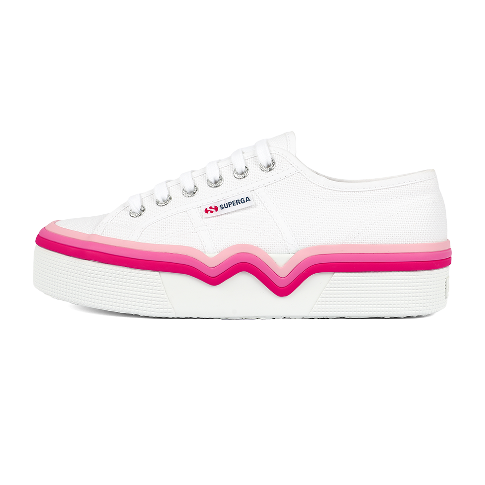 Superga 2740 is the contemporary Platform that stays true to the design of our most iconic style. With its 3.5 centimetres sole and its dainty silhouette, this sneaker can elevate both casual outfits and the most formal everyday looks. Upper in unlined cotton and outsole in vulcanized natural rubber with three multicolour rubber striped applied all around the foxing.