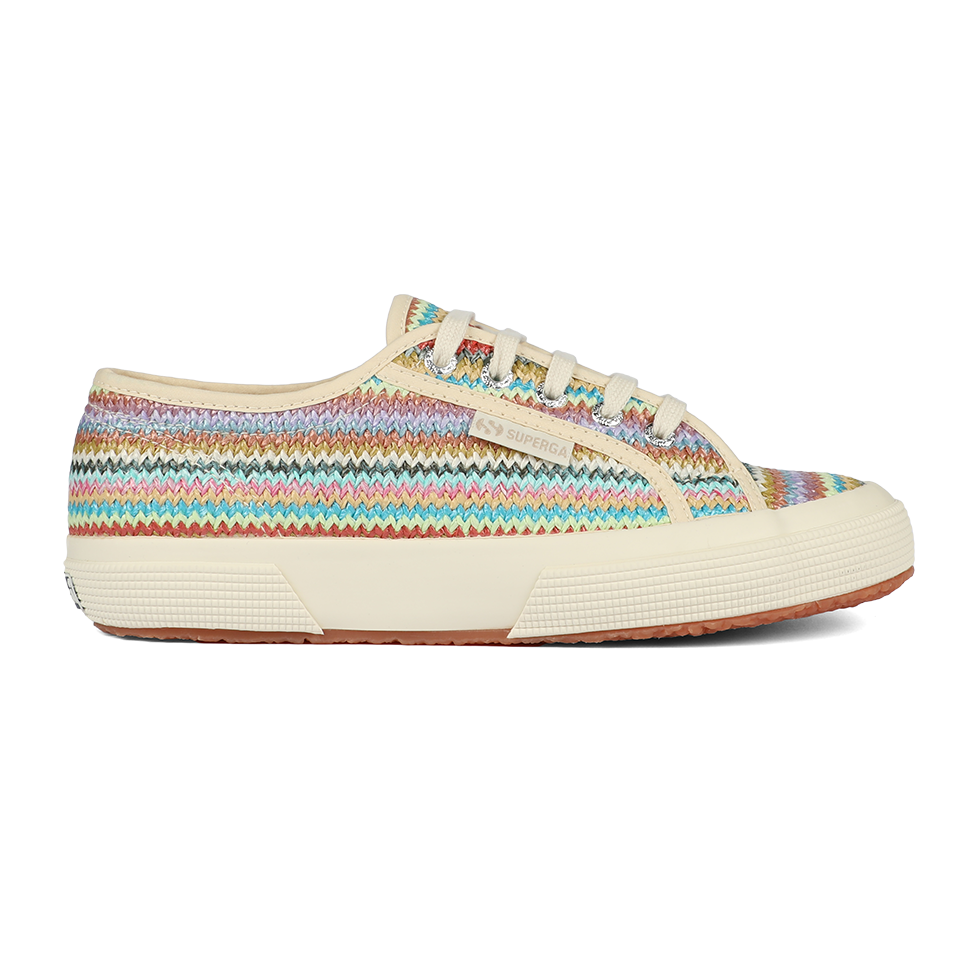 A fresh take on the iconic Superga 2750, the lace-up sneaker features a woven raffia upper and a boho-inspired palette that adds a refined, upbeat twist to summer looks. The vulcanized rubber sole and signature side jacquard logo label remain true to the brand’s timeless codes.