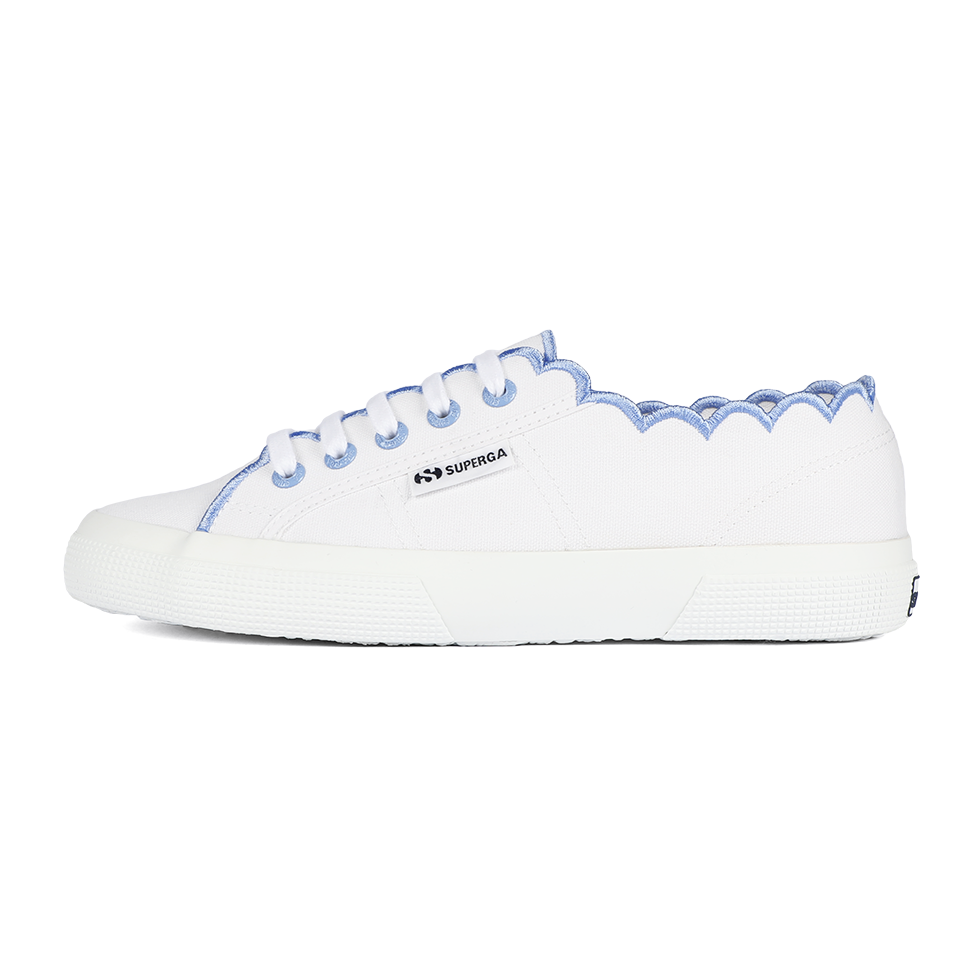 The newSuperga 3750 features an original lightweight construction and a high level of comfort. It maintains all the elements of the brand's lifestyle DNA. The shoes has a cotton upper, a flexible sole and a Memory Foam removable insole that perfectly adapts to the foot shape. The label turns blue, and the sole is made of white vulcanized natural rubber. The upper in thin cotton with waved embroidered edges confirm the stylistic codes of the brand.