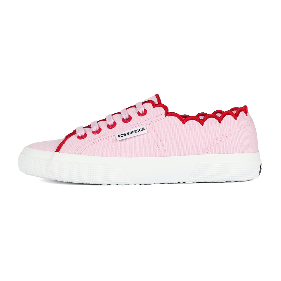 The newSuperga 3750 features an original lightweight construction and a high level of comfort. It maintains all the elements of the brand's lifestyle DNA. The shoes has a cotton upper, a flexible sole and a Memory Foam removable insole that perfectly adapts to the foot shape. The label turns blue, and the sole is made of white vulcanized natural rubber. The upper in thin cotton with waved embroidered edges confirm the stylistic codes of the brand.